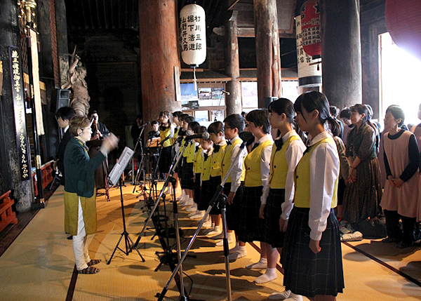 合唱部会 −音楽事業− 子ども向けに「まつぼっくり少年少女合唱団」、成人向けに「音楽の森合唱団」「大和まほろば合唱団」「むろうコーラス」と、あわせて4つの合唱団を主催支援。県内の著名な寺社仏閣や景勝地での「歌の奉納」や、「音楽療法」を取り入れた合唱団での練習やコンサートを開催するほか、CD・書籍の販売など、音楽に関するさまざまな活動をサポートしています。 合唱団紹介 【主催合唱団】 音楽の森合唱団 【支援合唱団】 まつぼっくり少年少女合唱団 大和まほろば合唱団 音楽の森むろうコーラス 歌の奉納 元来、音楽や歌は、聴衆に聞かせたり、個人で楽しんだりするものではなく、自然や神仏に畏敬の念を込めて捧げるもの「祈り」でした。NPO音楽の森では、芸能の原点でもある「奉納音楽」のルーツに立ち返り、奈良県内外の著名な寺社仏閣や、パワースポットと呼ばれる場所で、歌の奉納を行ってまいりました。通常では絶対に立ち入ることのできない聖域での奉納は、合唱団の部員にとっても、一生に一度の貴重な経験となっています。 歌の奉納をさせていただいた寺社様例 (あいうえお順、敬称略) 【奈良県内】 飛鳥寺、安産寺、大神神社、橿原神宮、金峯山寺、興福寺、西大寺、鷺栖神社、信貴山玉蔵院、淨教寺、聖林寺、大安寺、天河大辨財天社、十津川玉置神社、東大寺、丹生川上神社上社、室生寺、薬師寺、龍泉寺、瀧川寺、霊山寺など 【奈良県外】 皇龍寺(韓国慶州市)、醍醐寺(京都市)、仏国寺(韓国慶州市)、普天間宮(沖縄県)、萬徳寺(福井県小浜市)、若狭神宮寺(福井県小浜市)など 音楽療法 音楽の森では、音楽活動を通じて、あらゆる世代の人に、心の癒やしと健康づくりを行っております。普段のコーラス指導にも積極的に取り入れ、大和まほろば合唱団の健康増進に役立てるほか、これまでに多くの高齢者施設や福祉施設にも訪問し、歌のコンサートを行ってきました。理事長の荒井敦子は、日本音楽療法学会の認定音楽療法士であり、同会の代議員も務めています。 音楽療法コンサートを開催した施設様例 (敬称略) いずみ病院(沖縄県)、小浜市総合福祉センター「サン・サンホーム小浜」(福井県小浜市)、鷺栖の里(橿原市)、ナザレ園(韓国慶州市)、春咲コンサート(参加型)など ● 音楽療法とは… 「音楽の持つ生理的・心理的・社会的働きを、心身の障害の回復、機能の維持改善、生活の質の向上に向けて、意図的、計画的に活用して行われる治療的、教育的技法である」と定義されており、大きく分けて、児童、成人、高齢者とに分けることができます。発達障害、身体障害や喘息、不登校・引きこもりなどの児童に対する音楽療法は、学校、施設、自主グループなどで実践されています。また、発達障害、精神障害など成人期の疾患や障害に対して、作業所、施設、病院の精神科などで行なわれています。そして、認知症や加齢に伴うさまざまな慢性疾患・障害、脳卒中の後遺症などを抱える高齢期の方々に対しては、病院、老人保健施設、高齢者施設など、多くの場で音楽療法が取り組まれています。(一社)日本音楽療法学会のページhttps://www.jmta.jp/ 活動記録 音楽の奉納 2021.01.10 1月5日初玄奘縁日・平和祈願祭法要 音楽の森合唱団 2020.12.06 「こんにちはJAPAN」動画撮影 音楽の奉納 2020.10.18 奈良県ユニセフ協会設立20周年記念行事、東大寺で歌の奉納! 合唱部会 2020.10.01 興福寺で、室生米を奉納! 一覧を見る