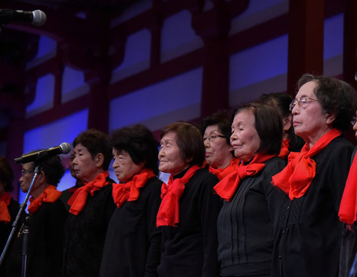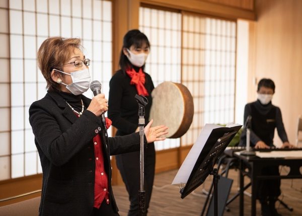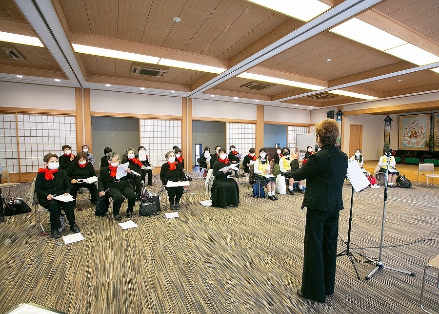 音楽の森合唱団 NPO主催事業 プロフィール 2018年9月のボニージャックスとの共演を機に、大和まほろば合唱団・音楽の森むろうコーラス・コールピュアランド(荒井敦子指導)の3合唱団が中心となり、地域・性別・年齢の垣根を超えて同年11月に結成。1本の木が集まり大きな森となるように、歌声で町と村、人と人とを繋ぎます。※入団資格は、まほろば、むろう、コールピュアに所属している方のみに限ります。 < コロナ禍でのレッスンについて >医師であるNPO理事による指導のもと、新型コロナウィルスの感染予防に努めています。①入口での検温・消毒 ②2部屋に分けての少人数制リモートレッスン ③換気の徹底 を行っています。また、サージカルマスクと共に、合唱用の特殊なマスクも作製して着用しています。 ギャラリー 2018.9 ボニージャックスと共演 2019.10 メモリーズ・オブ・ユー出演 2019.3 韓国慶州市での交流会 2019.12 薬師寺 時空間絵巻 団員からのメッセージ 大川 悦子さんみんなで楽しく歌えることが、本当の姿だと思います。コロナ禍になっても、リモートなど工夫してくださります。改めて「みんなで歌える喜びと有難さ」を感じる日々です。 福井 忍さん60代から90代までの団員が交流しています。年齢差があっても新しいことにみんなでチャレンジできることが、全員が楽しんで参加している原動力になっています。 レッスン 原則月2回、 水曜もしくは日曜※コンサート前は適宜練習を行います 時 間 13時~15時30分(現在は2班体制) 場 所 奈良市法蓮町630-4(音楽の森まつぼっくりスタジオ) レッスン料 月額6,000円 募集対象 各合唱団に所属している人 講師陣 指導:荒井 敦子アシスタント:村尾 藍ピアノ:宮川 真由美、大山 りほ お知らせ・活動記録 音楽の奉納 2021.01.10 1月5日初玄奘縁日・平和祈願祭法要 音楽の森合唱団 2020.12.06 「こんにちはJAPAN」動画撮影 音楽の奉納 2020.10.18 奈良県ユニセフ協会設立20周年記念行事、東大寺で歌の奉納! 一覧を見る