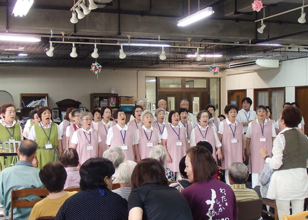 大和まほろば合唱団 NPO支援事業 プロフィール 2005年春、世代を超えて日本の心の歌を大切に歌い上げ、平和のメッセージを発信していく合唱団としてスタート。団員の平均年齢は78歳。音楽療法士でもある理事長の荒井敦子が、歌うことの素晴らしさ、歌の心を、絶妙なトークを交えながら、たっぷり2時間指導しています。目指すのは、人を元気づけて生活にハリと潤いを与えてくれる場所。ユーモアあり、感動あり、奈良ならではの活動を展開中です。自然学校やコンサートでは、まつぼっくり・むろうコーラスとも共演しています。 < コロナ禍でのレッスンについて >医師であるNPO理事による指導のもと、新型コロナウィルスの感染予防に努めています。①入口での検温・消毒 ②2部屋に分けての少人数制リモートレッスン ③換気の徹底 を行っています。また、サージカルマスクと共に、合唱用の特殊なマスクも作製して着用しています。 ギャラリー 沖縄の自然学校にて 鷺栖神社にて 天川村の自然学校にて オリジナルCD「今が一番幸せ!」 大和まほろば合唱団結成10周年記念CD!!在籍団員40名、平均年齢79歳(当時)の大和まほろば合唱団。いつも活気とパワーに満ちた団員たちの人生を振り返って紡いだ言葉をちりばめました。思わず口ずさみたくなる楽しい曲など、盛りだくさんの「幸せ」をお楽しみください。<収録曲>1.今が一番幸せ 作詞作曲:荒井敦子 モデル:東谷むつ子2.私がお嫁さんになった日のこと 作詞:磯田廣子(まほろば団員) 作曲:荒井敦子3.まほろばロック 作詞作曲:荒井敦子 原案:大和まほろば合唱団 購入はこちら 団員からのメッセージ 松尾 禎子 さんコロナ禍になって家にこもると、しゃべること、笑うことを忘れがち。危険は伴うけど出かけることも大事です。先生方も諦めずリモートなど考えてくださる。家でも行き帰りでも、皆で注意しながら続けていきたいです。 木本 道 さん70歳過ぎてから入団しました。一番うれしいのは、年齢が異なっていてもみんなが一緒に歌えること。また多くの行事に参加し、社会と繋がれることも喜びですね。わたしの生きがいです! レッスン 月2回、水曜もしくは日曜※コンサート前は適宜練習を行います 時 間 13時~15時30分(現在は2班体制) 場 所 奈良市法蓮町630-4(音楽の森まつぼっくりスタジオ) 募集対象 歌に興味のある方ならどなたでも歓迎! レッスン料 月額 5,000円※別途入会金が必要です 講師陣 指導:荒井 敦子アシスタント:村尾 藍ピアノ:宮川 真由美、大山 りほ お知らせ・活動記録 音楽の奉納 2021.01.10 1月5日初玄奘縁日・平和祈願祭法要 音楽の奉納 2020.10.18 奈良県ユニセフ協会設立20周年記念行事、東大寺で歌の奉納! 一覧を見る